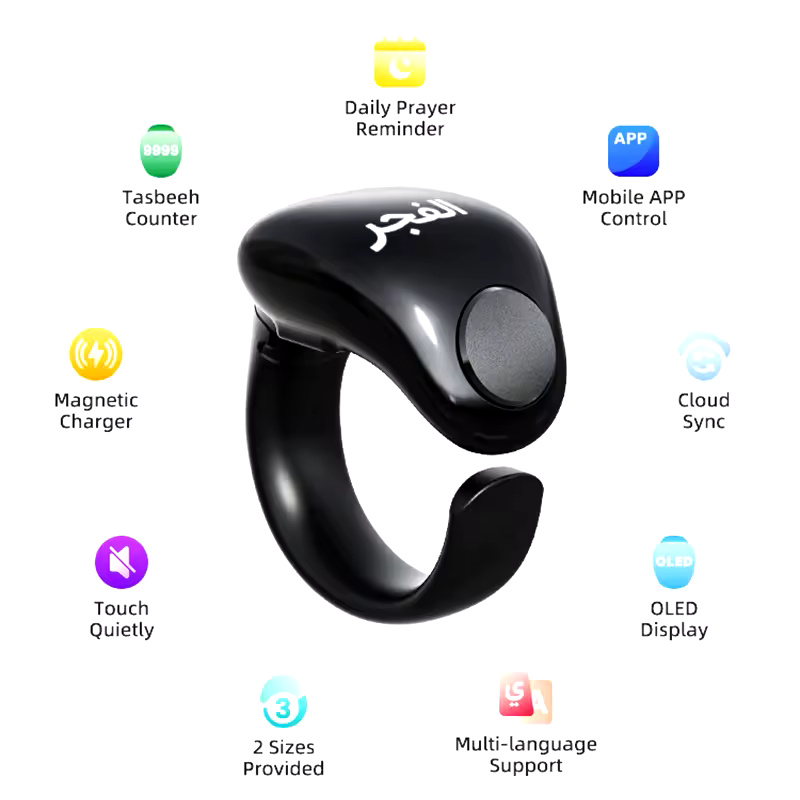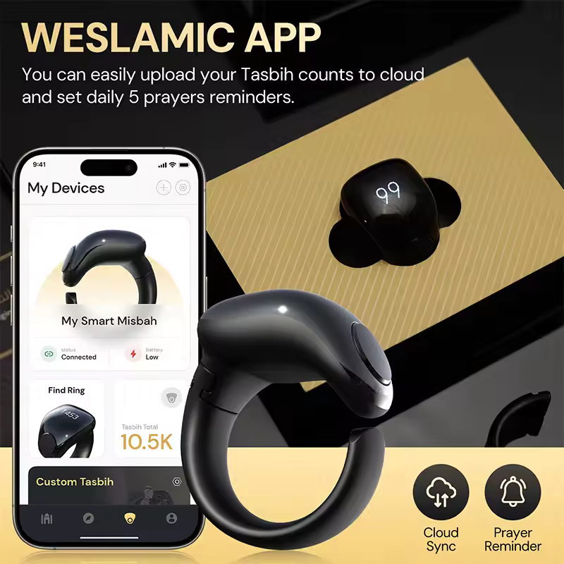 Weslamic Smart Tasbeeh Zikr Ring – Digital Tally Counter for Muslims | Waterproof, Magnetic Charging, and Prayer Reminder for Spiritual Connection